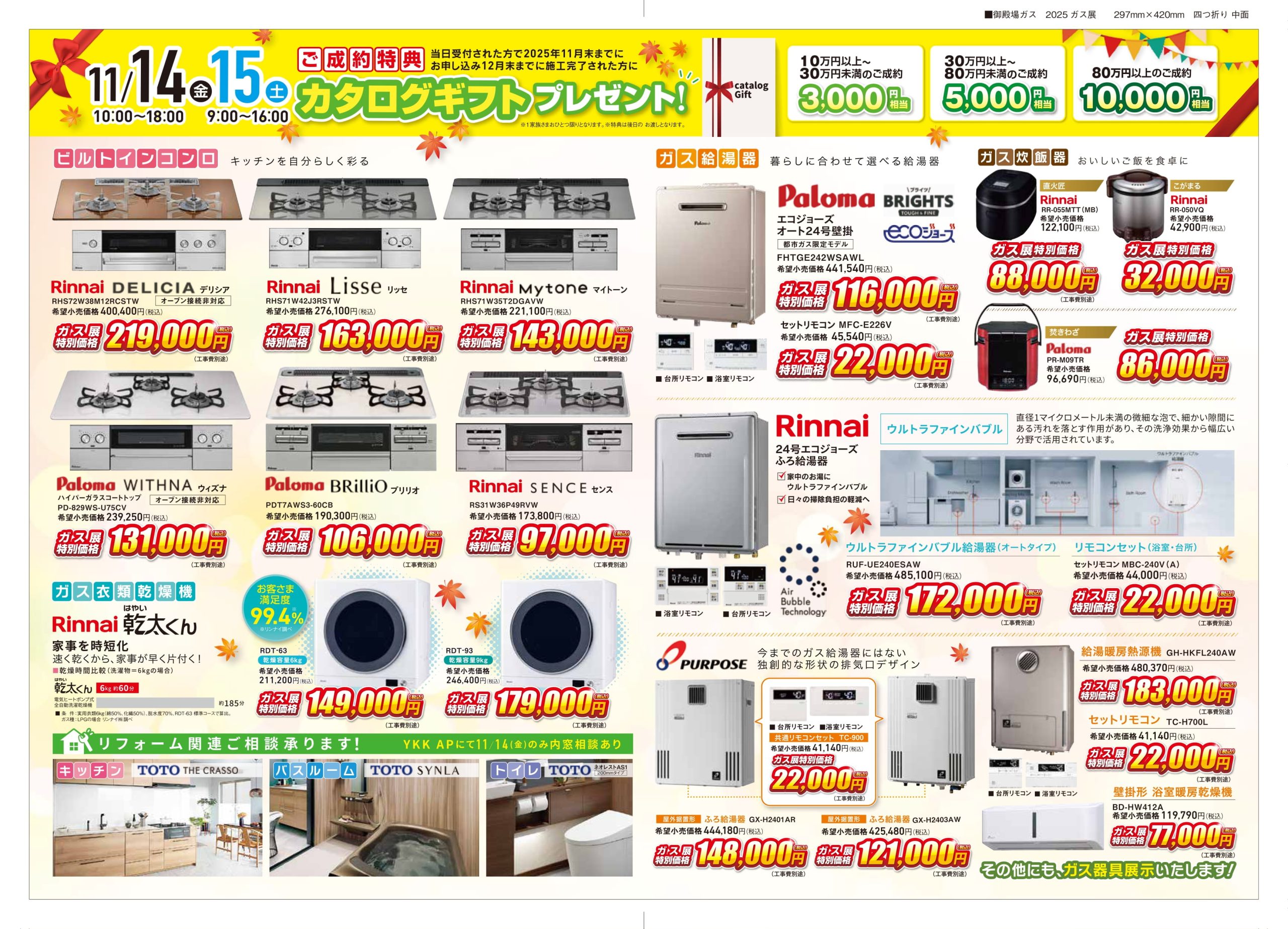 800,000円以上のガス機器をお買い上げ→10,000円相当のカタログギフト!